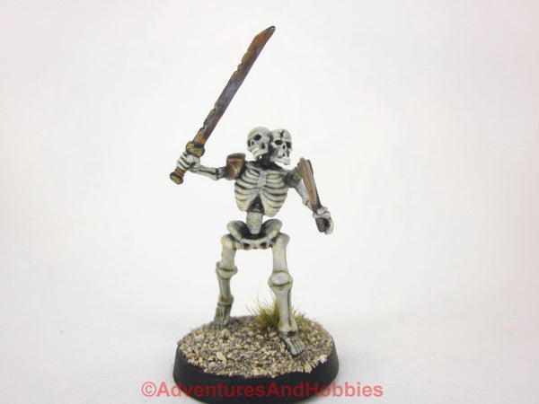 Description: An evil abomination born of a necromancer's experiments, this undead creature possesses a double skull. It wields a rusty sword and hand ax with equal skill. Rust and grime cling to the creature's weaponry.